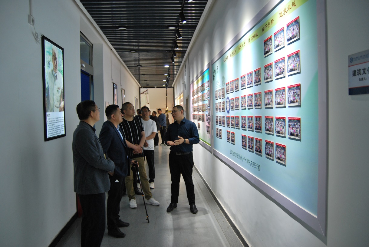 会前,双方共同参观了建筑工程技术中心,张主任对现阶段本科、专科开设的专业,配套的实训设施设备,以及今后实训场地更新的规划布置做了详细介绍。