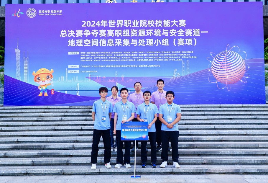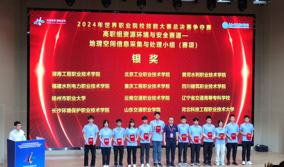 10月25日-28日,2024年世界职业院校技能大赛总决赛争夺赛高职组资源环境与安全赛道地理空间信息采集与处理小组(赛项)在广东工贸职业技术学院成功举办。来自30个省、自治区的62支参赛队伍激烈角逐,best365建筑工程系学生欧韶康、吴良宇、曹森、张航(指导教师:赵栋、赵玲)组队参赛,最终获得银奖。