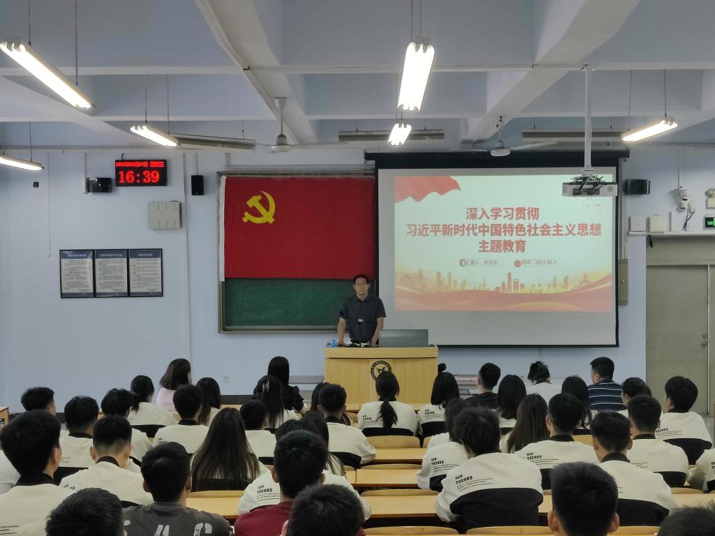 根据建筑工程系党总支主题教育工作安排,6月7日晚,建筑工程系党总支刘志忠书记在主教学楼1-1阶梯教室,为学生党支部讲授学习贯彻习近平新时代中国特色社会主义思想主题教育专题党课,引导学生党员和入党积极分子坚持不懈用习近平新时代中国特色社会主义思想凝心铸魂,更好以党的创新理论武装头脑、指导实践、助推成长,以这次主题教育为契机,学思想、强党性、重实践、建新功,坚定不移听党话、跟党走,怀抱梦想又脚踏实地,敢想敢为又善作善成,立志做有理想、敢担当、能吃苦、肯奋斗的新时代好青年,让青春在全面建设社会主义现代化国家的火热实践中绽放绚丽之花。
