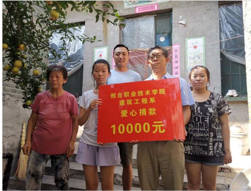 2.下图为: 2019 年 8 月 19 日下午,建筑工程系党总支书记刘志忠、副书记李宁和学生辅导员石旭、马陆洋探望闫氏姐妹,并送去爱心捐款 1 万元。