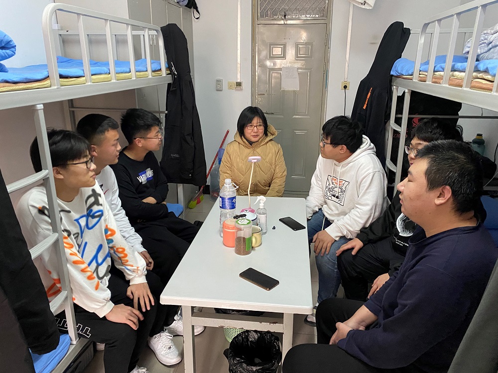 在开展主题班会的同时,各包班党员教师还深入学生宿舍,与学生面对面谈心,拉进了与学生的距离,同学们可以在欢乐放松的状态下与教师轻松交谈,畅谈理想和人生,也让每一位包班教师对当下学生们的学习状态和工作生活有了进一步的了解,以便提出行之有效的建议。