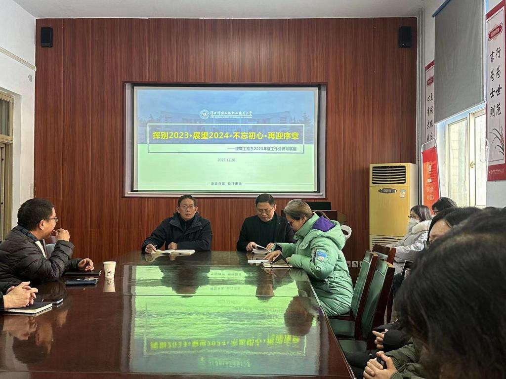2023年12月20日下午,建筑工程系召开“挥别2023 ·展望2024 ·不忘初心 ·再迎序章”年终总结与展望教职工大会。