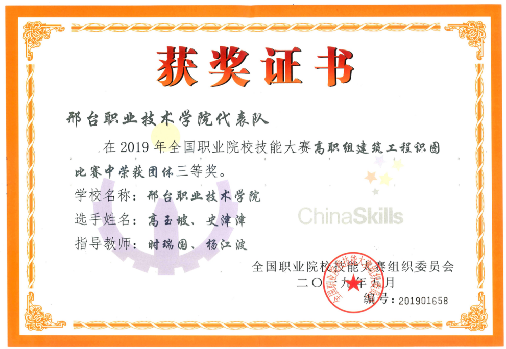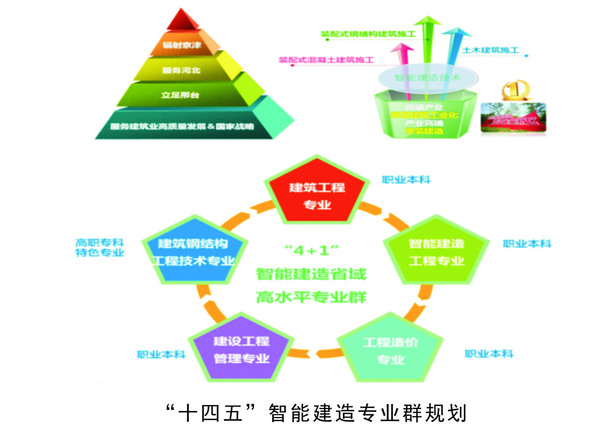 专业群综合实力显著增强。建筑工程系对接京津冀建筑产业转型升级,立足邢台、服务河北、辐射京津。“十三五”和“十四五”期间,大力提升专业群综合实力,构建职业本科为主的“4+1”省域高水平智能建造专业群,服务智能建造和建筑工业化协同发展。先后与邢台交建集团、中基华集团校企合作共建产业学院,协同育人。近十年来,专业群综合实力显著提高:建成1个国家级实训基地、2个国家级骨干专业、2个职业本科专业;主持1门国家精品在线课、12本国家级规划教材、5个教育部协同育人项目;主持3个省级专业教学资源库、5门省级精品课。获全国职业技能大赛二等奖1项、三等奖4项;获全国互联网+创新创业大赛铜奖1项、省级一等奖2项;获省级职业技能大赛一等奖22项;教师获省教学能力比赛一等奖1项、二等奖2项。