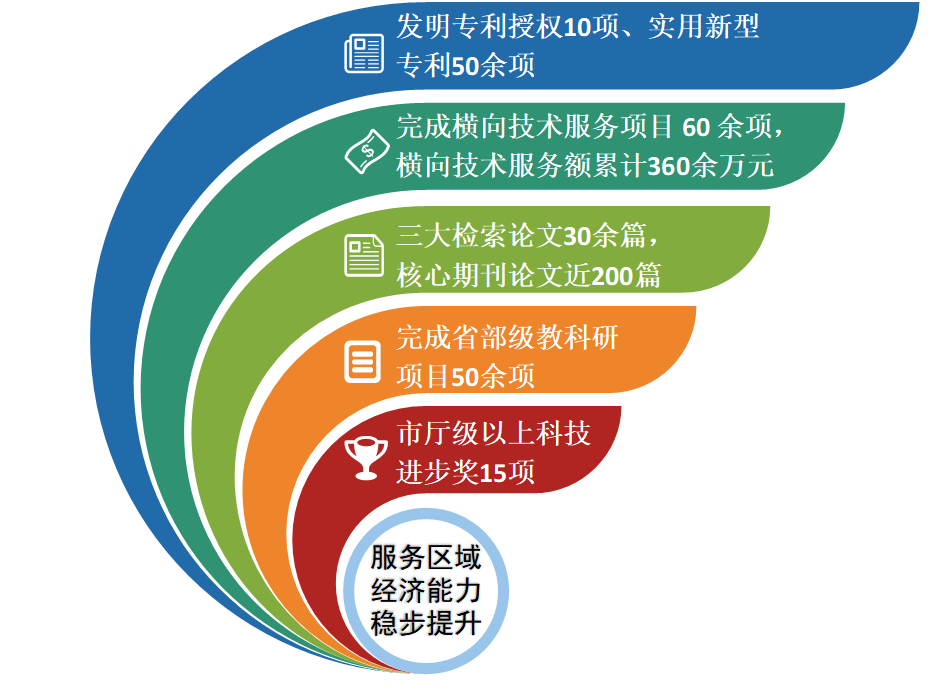 服务区域经济能力稳步提升。建筑工程系“搭平台、建团队”,深入推进校企协同创新、联合攻关和成果转化。近十年来,建成省级协同创新平台1个、市级平台2个,各级科研团队4个。累计完成省部级教科研项目46项,开展横向技术服务60余项,到款额360余万元。获河北省教育教学优秀成果奖1项,河北省科技进步三等奖1项,河北省建设科技进步奖7项。获邢台市等科技进步及社会科学优秀成果奖7顶,校级教学成果奖6项。其他国家及省市奖项近20项。公开发表SCI、EI等收录论文30余篇、全国中文核心期刊论文近200篇。第一完成人完成发明专利授权10项、实用新型专利50余项。