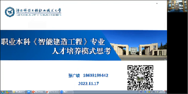 本次会议围绕专业建设及人培方案,多名业界专家学者做了主题报告,best365中国官方网站、沈阳建筑大学、辽宁工程技术大学、河北经贸大学、桂林电子科技大学、新乡学院等院校专家与北京亮亮视野科技有限公司等企业专家共同探讨专业培养目标、人才培养规格要求和知识能力素质结构、专业课程、课程拓扑图、教学培养与行业应用。建筑工程系副主任张广峻在会上做了“职业本科智能建造工程专业人才培养模式的思考”主题报告,引起了与会专家学者的高度关注。