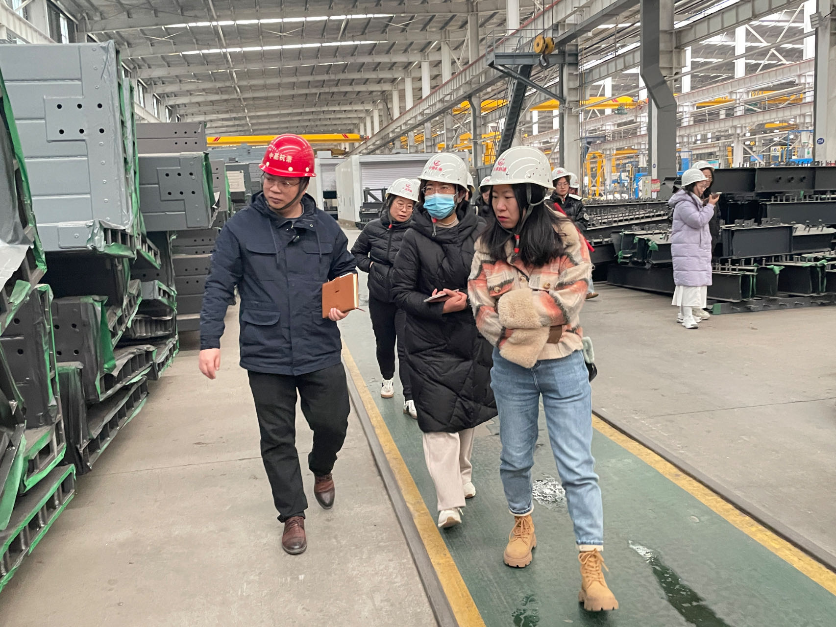 在公司的精心安排下,学员们首先参观了中顺基润的生产车间和研发中心。公司技术人员详细介绍了钢管束生产线、H型钢梁生产线以及钢筋桁架楼承板的生产流程和技术特点。学员们亲眼目睹了从原材料到成品的全过程,深刻感受到现代化智能制造的高效与精准。