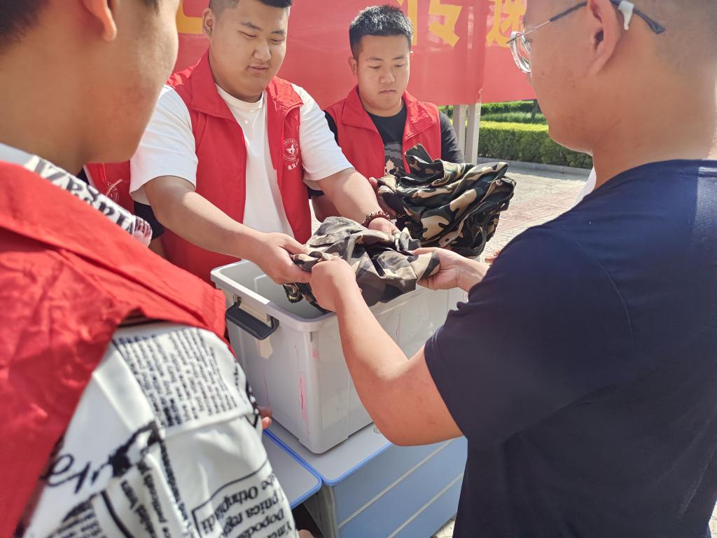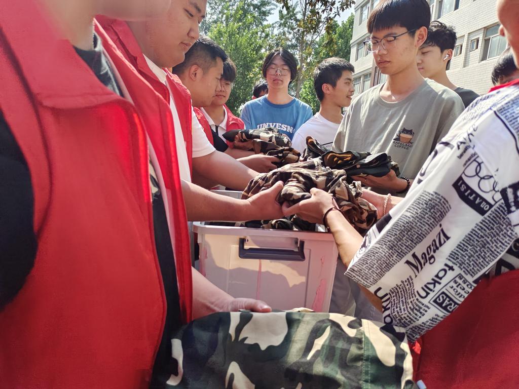 经过前期宣传动员,建筑工程系同学们纷纷行动起来。他们将闲置的衣物清洗干净、折叠整齐,依次交到学生生活区4号楼前衣物征集站。随后由志愿者们收集并打包。这批衣物将跨越1000华里山海,寄送到西庄子村,温暖远方的家庭。