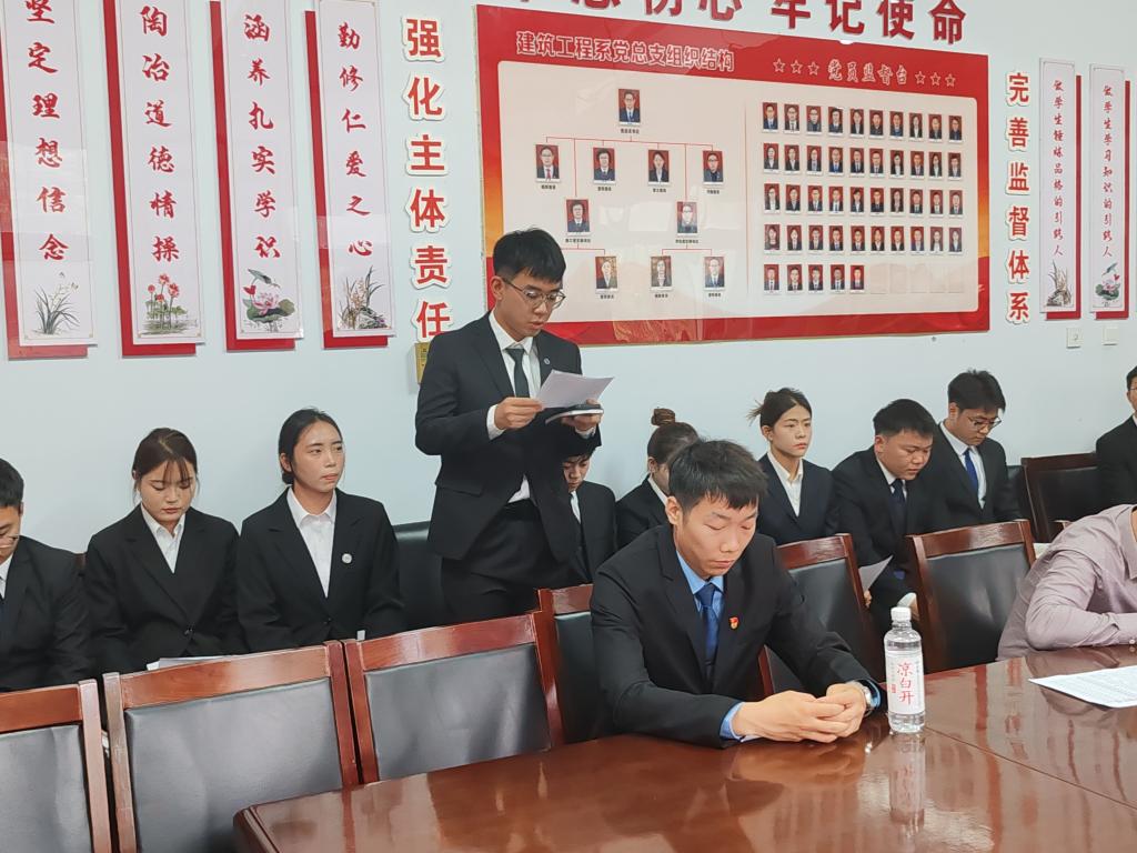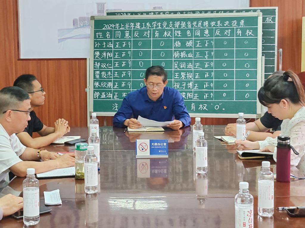 5月24日下午,建筑工程系学生党支部召开支部大会,讨论张丁、刘铭宇等18名预备党员能否转正和孙子涵、祝子博等12名发展对象能否入党问题。建筑工程系党总支刘志忠书记、学生党支部党员出席了会议。