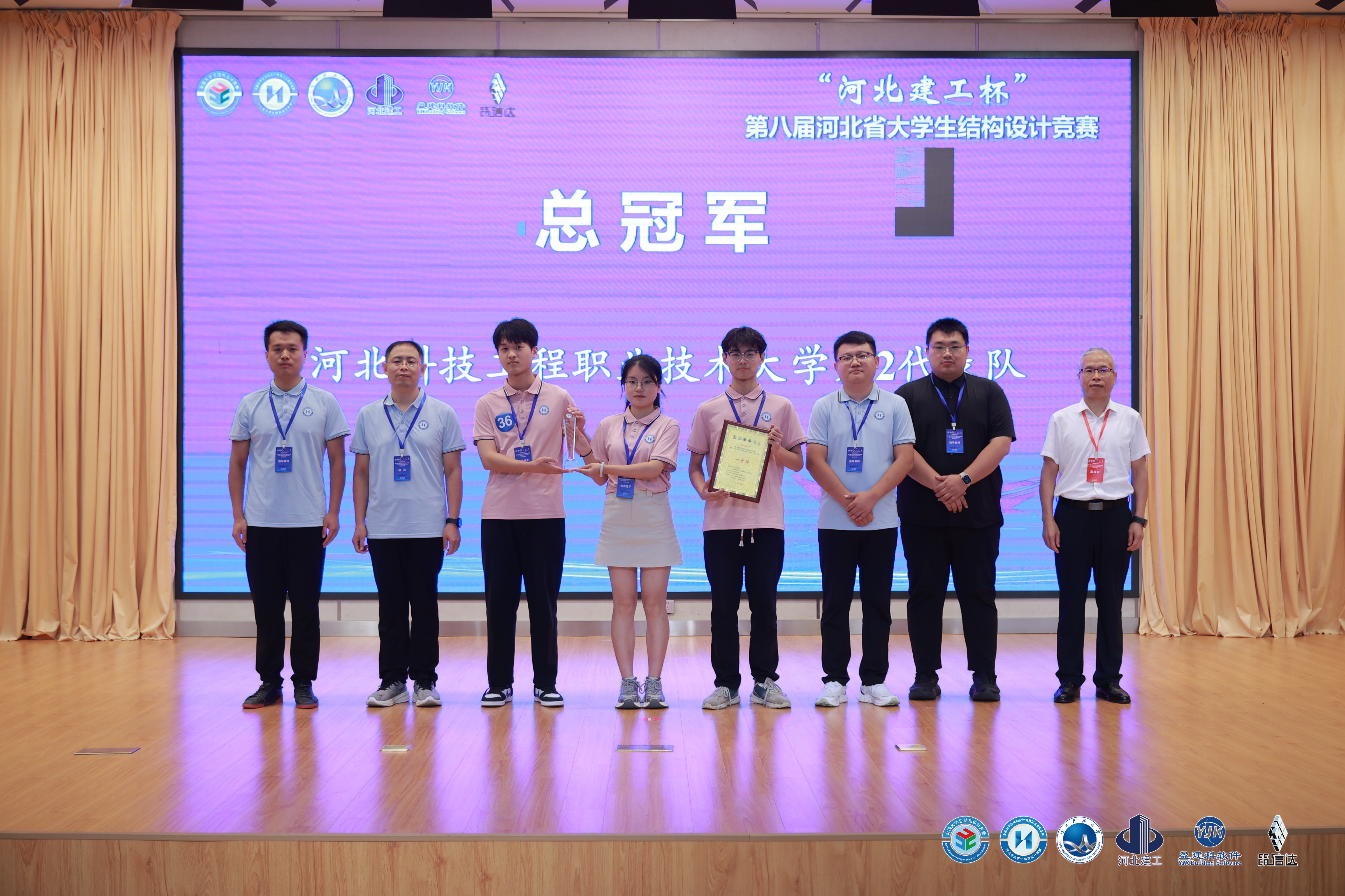 近日,由河北省教育厅、河北省高等学校土建类教学指导委员会主办,河北科技大学承办的2025年“河北建工杯”第八届河北省大学生结构设计竞赛暨第十八届全国大学生结构设计竞赛河北省分区赛圆满落幕。best365中国官方网站建筑工程系选派的两支参赛队伍在燕山大学、河北科技大学等众多普通高校中表现卓越,斩获一等奖1项、二等奖1项,其中以一等奖的第一名的绝对优势摘得竞赛总冠军,并将参加国赛,同时荣获“优秀组织奖”,创下best365在该赛事中的历史最佳成绩,为best365争的极高的美誉度。