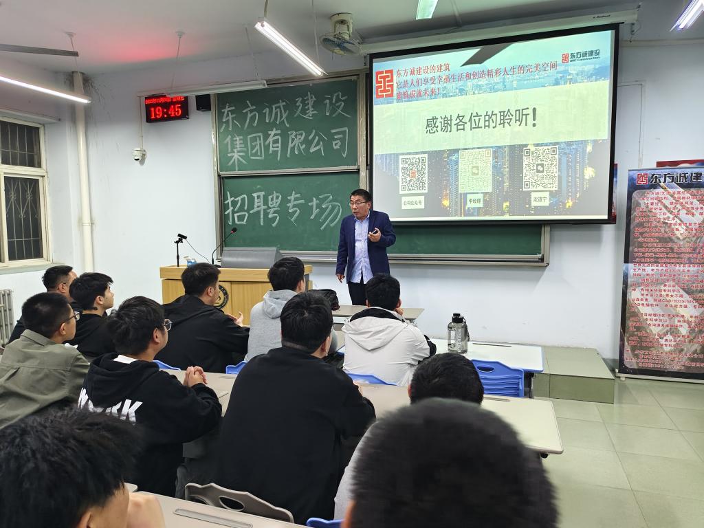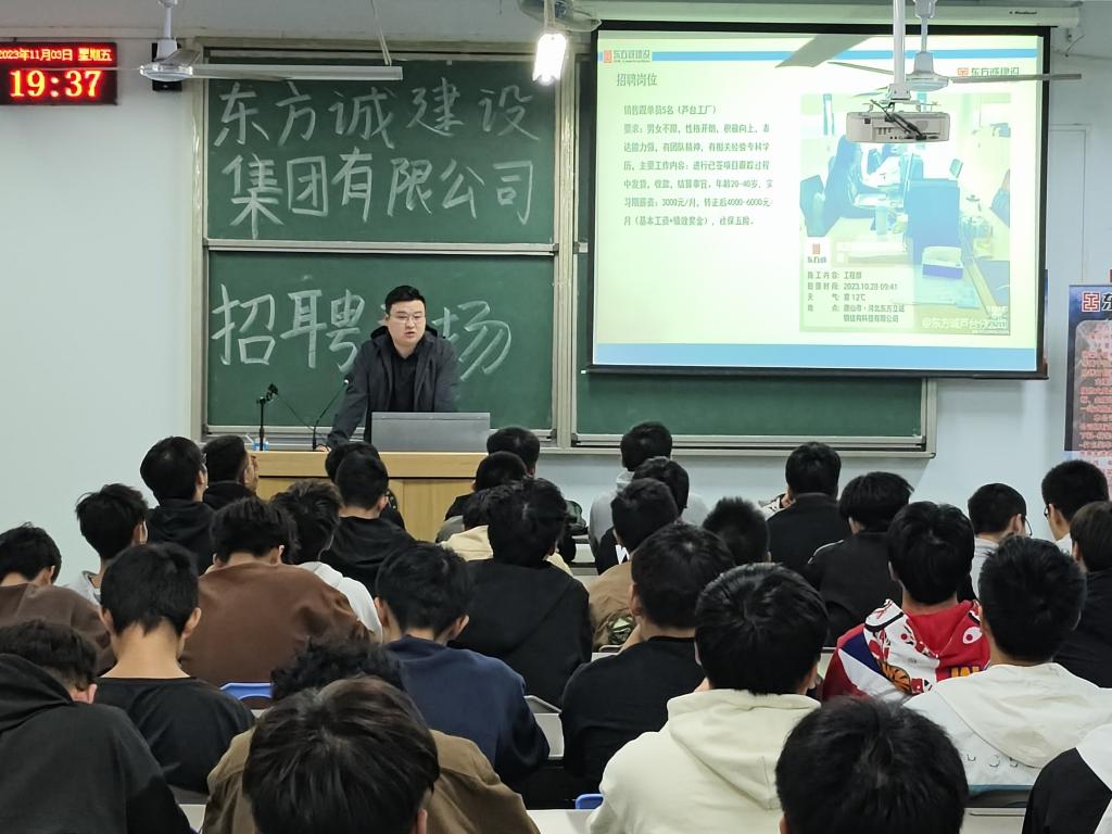 为了让应届毕业生得到更多的就业机会,也为了让企业能够获得更多优质的应聘者,11月3日晚,东方城建设集团有限公司在二教107进行企业专场招聘会,在于老师的组织下,建筑工程系2023届毕业生积极参加企业招聘会。