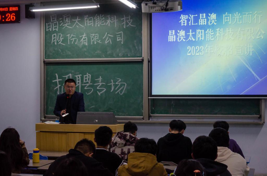为扎实推进毕业生就业工作,为毕业生提供高效、精准的就业服务,11月2日晚上,晶澳太阳能科技股份有限公司在二教105进行了企业专场招聘会。在于老师的带领下,建筑工程系2023届毕业生参与企业招聘会。