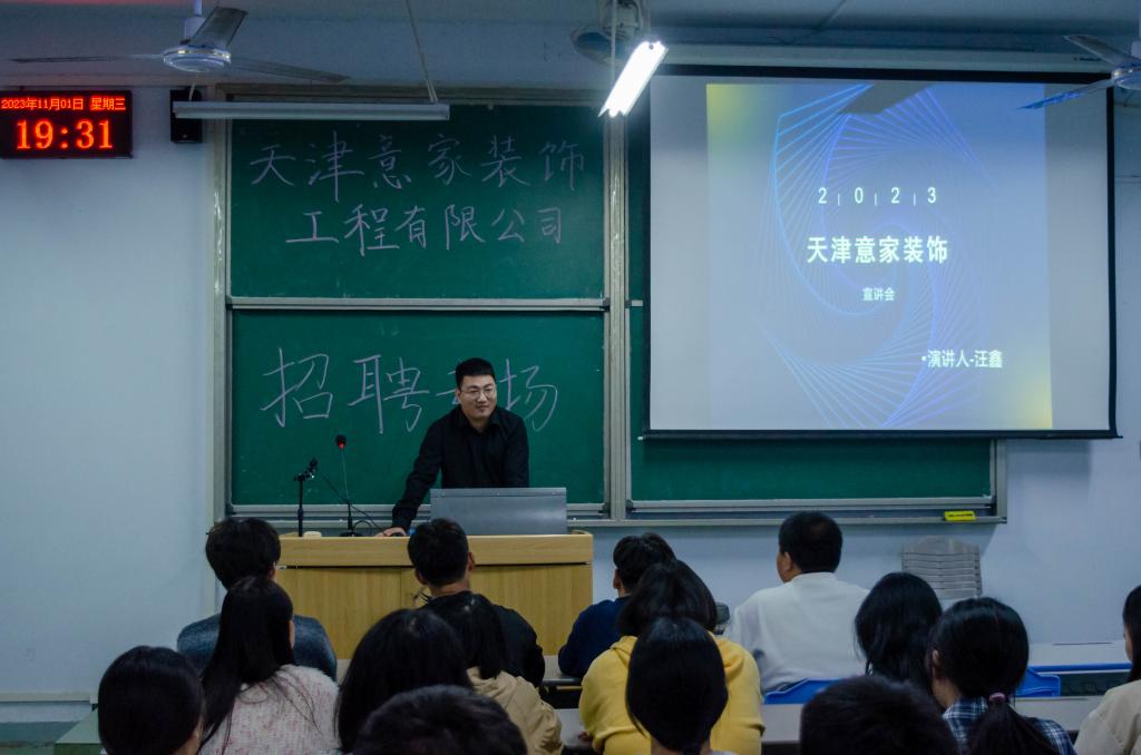 为深入实施就业优先战略,充分发挥校园招聘主渠道作用,我系于11月1日晚七点,在二教107教室举办天津意家装饰工程有限公司招聘会。在于老师的组织下,建筑工程系2023届毕业生积极参加。