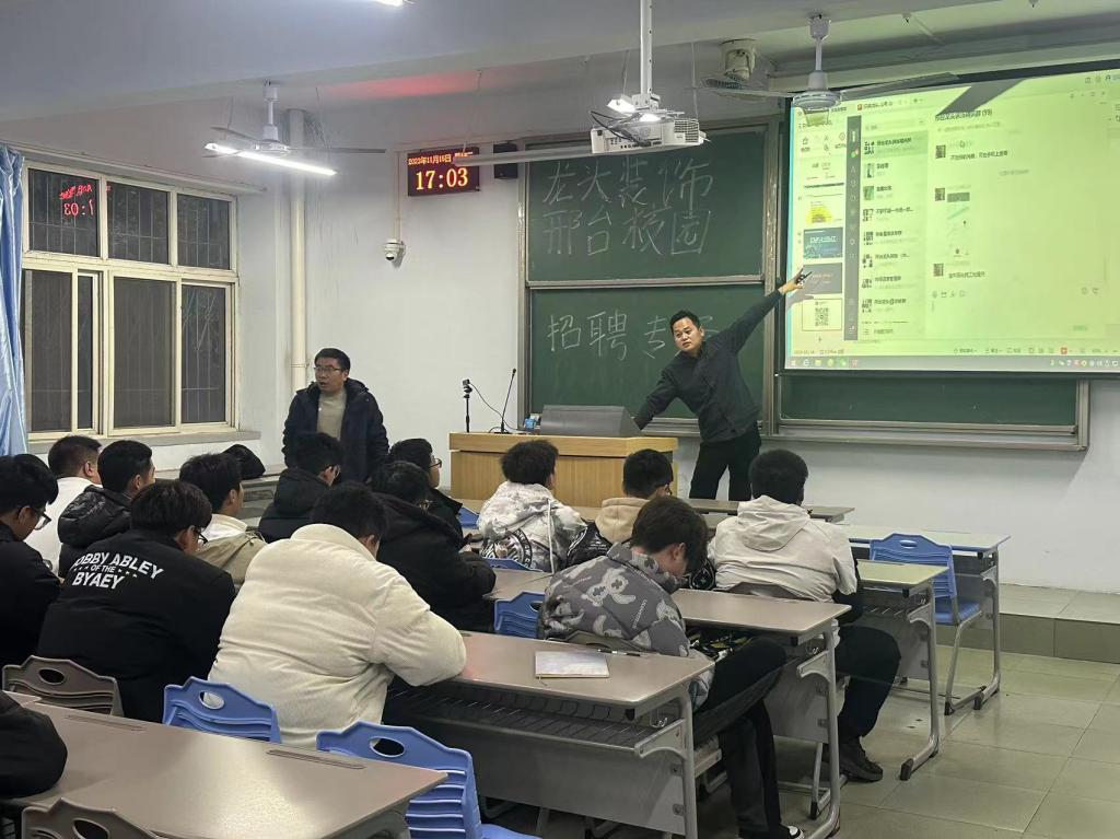 为主动对接国家经济社会发展的人才需求,积极引导毕业生积极就业,11月15日下午四点,在二教举办了龙头装饰集团专场招聘会。我系就业辅导员于小五老师出席本次招聘会,2023届毕业生积极参加。