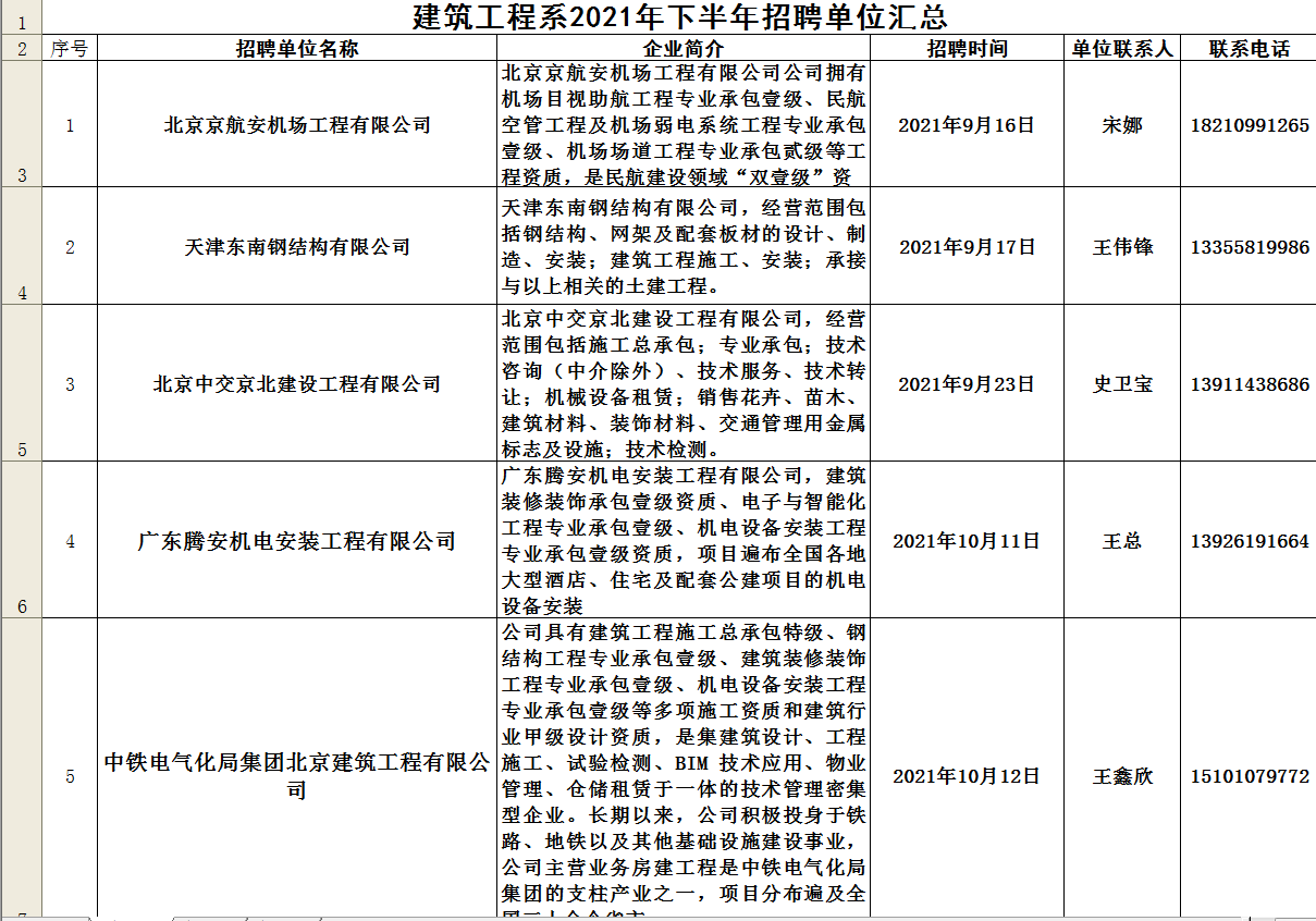 建筑工程系2021年9月份以来规模以上重点就业单位汇总(更新中)