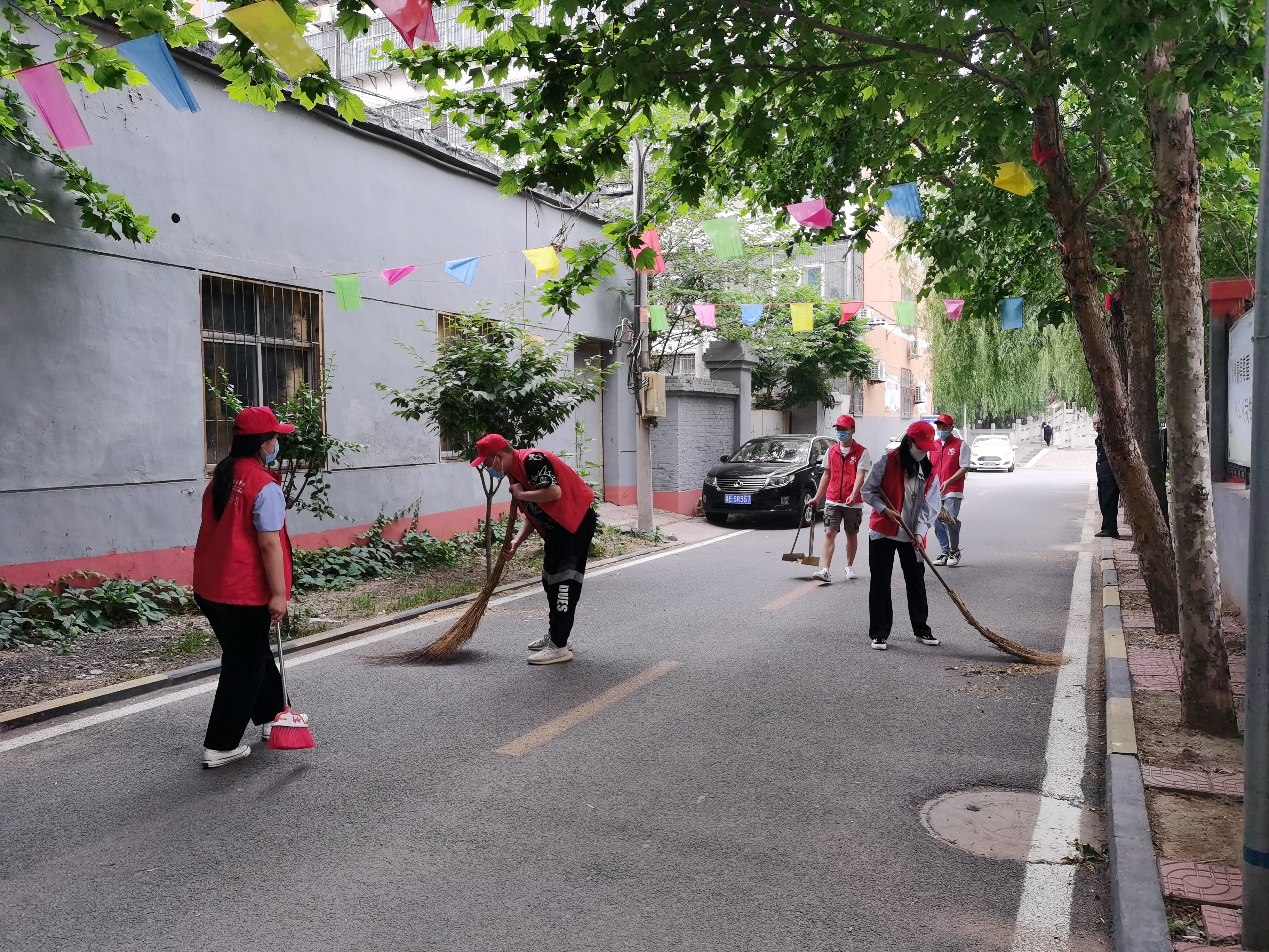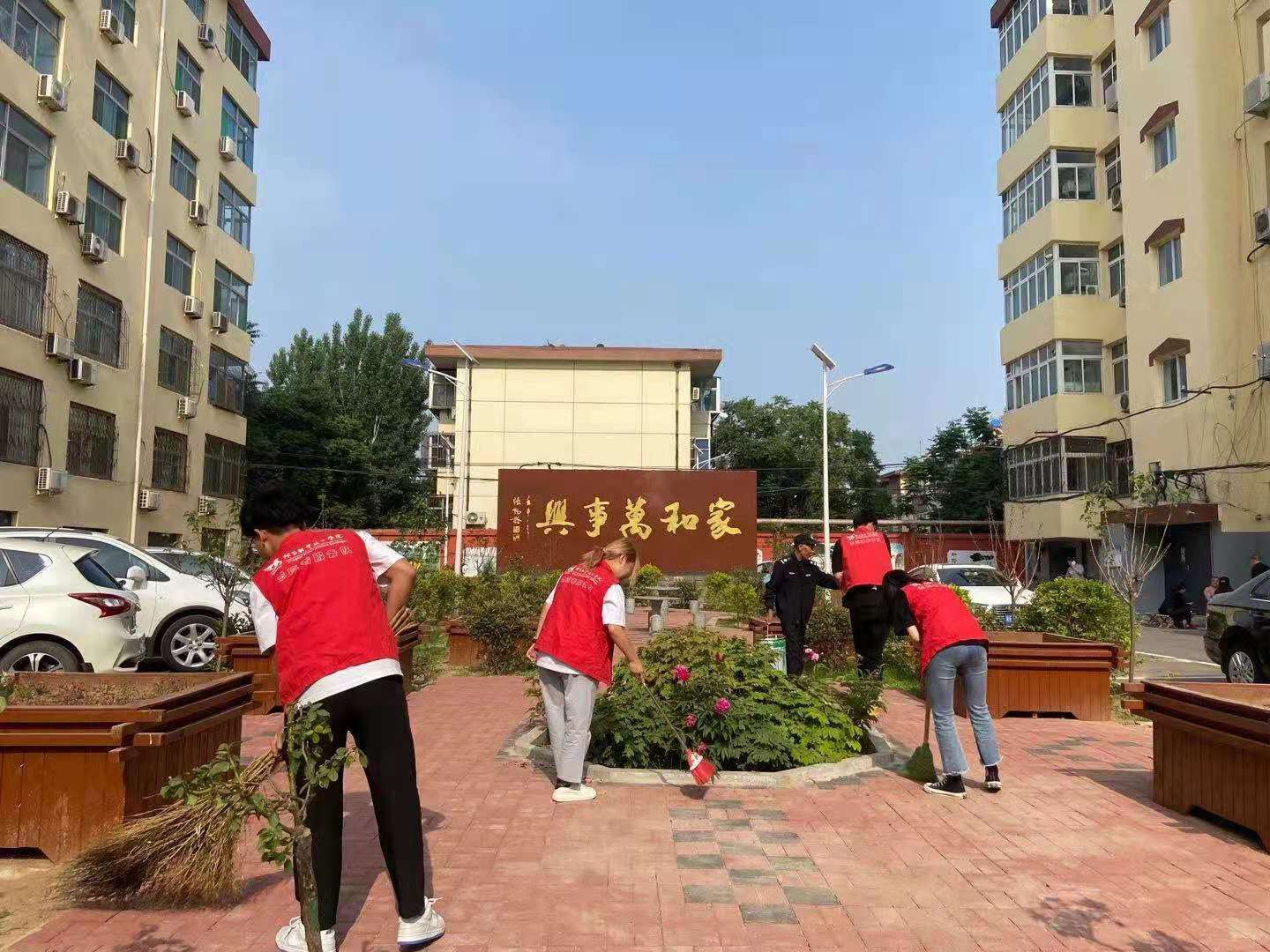 活动中,志愿者们身着红色马甲,佩戴红色帽子,打扫庭院,为鲜花浇水,清理花坛,大家充分发扬了不怕苦不怕累的精神,将小区环境整理的井井有条。他们干劲十足的身影,俨然成了小区里一道道靓丽的风景线。