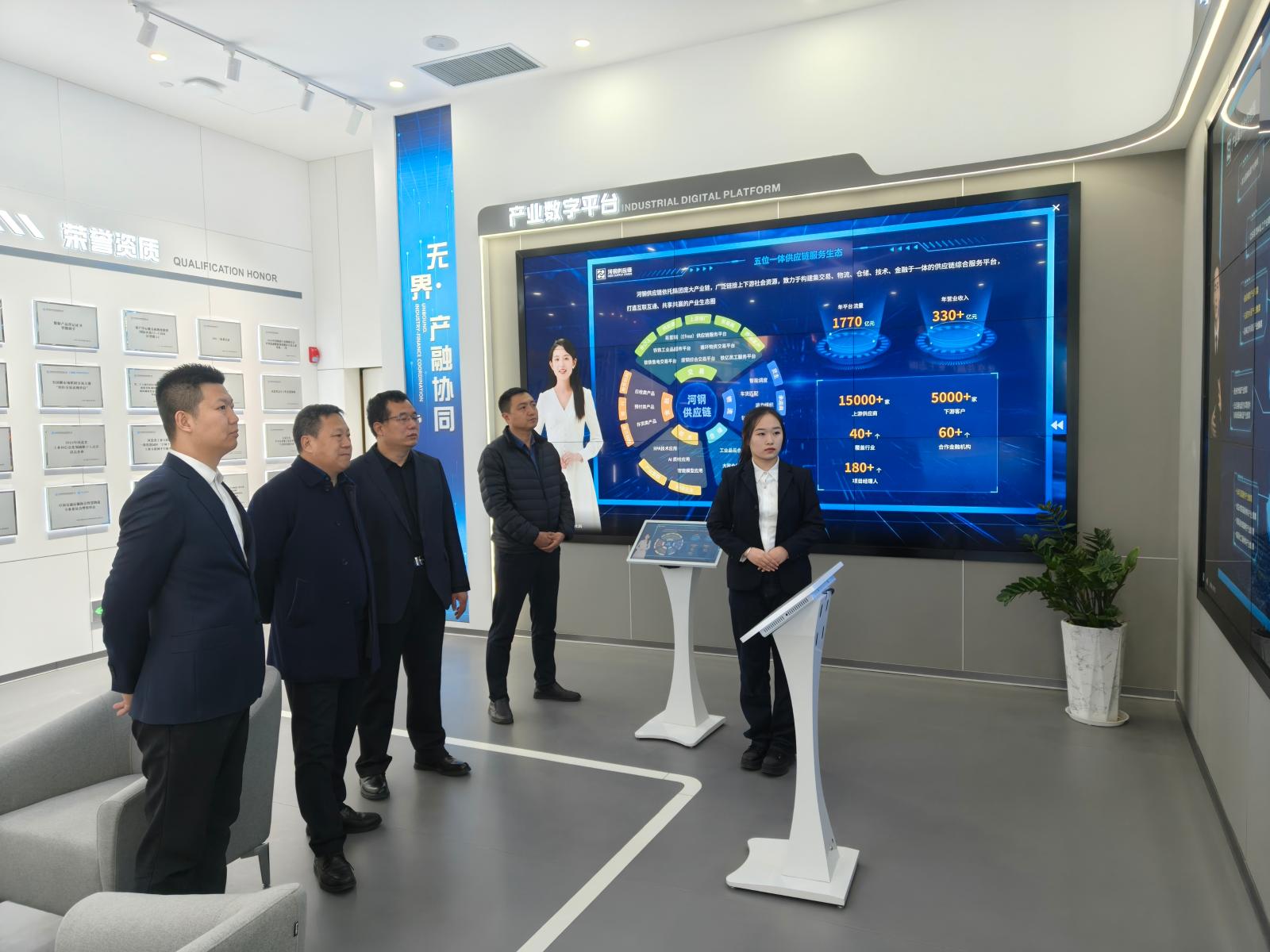 在河钢集团供应链管理有限公司,best365与河北创鉴科技集团有限公司董事长程军海一行受到了公司总经理李峰辉的热情接待。褚建立首先向公司介绍了学校的发展历程,随后,李峰辉、程军海分别介绍了各自公司的基本情况和业务范围,双方就实训平台、实践课程、教学场景搭建、教学资源和案例等方面进行了交流,达成了“以企业发展需求为导向,深化校企合作,支持以产教融合项目合作形式向学校开发转化成果”的合作愿景。