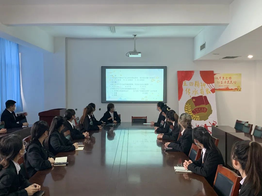 本次活动由团员们宣读入团誓词拉开帷幕,团员们精神饱满,声音铿锵有力,给活动现场增添了圣神的气氛。并且为了增加团员们对中国共青团的了解,还进行团知识快问快答活动,团员们积极回答问题,一起回忆着百年辉煌业绩,内心激动不已。