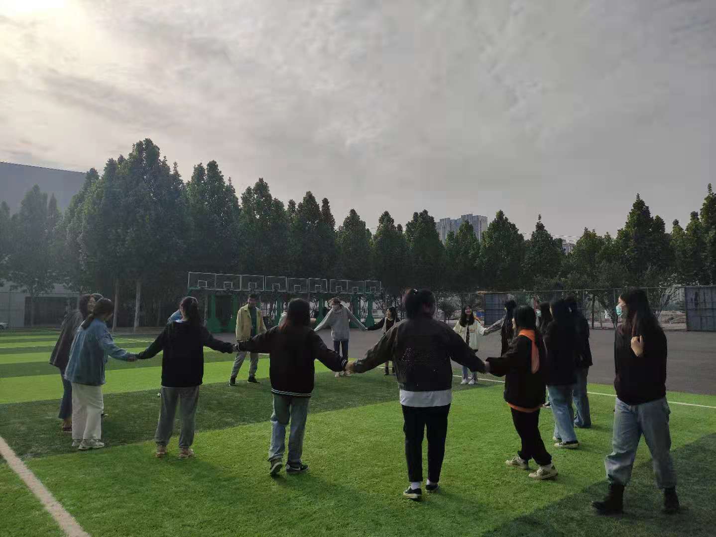 活动由主持人进行开场白,主持人激情澎湃的演讲使当场的同学热血沸腾跃跃欲试,随后主持人宣布比赛开始,为了检验同学们的团结性和积极性,首先进行“抱团取暖”的游戏。同学们都怀着紧张的心在一次次的口令声中决出最终胜利者。第二个游戏“万里长城永不倒”,同学们犹如一座长城,无论主持人说什么动作他们都屹立不倒,就像我们的国家坚韧的屹立在世界东方。最后为每组获奖同学颁发了奖状以资鼓励。