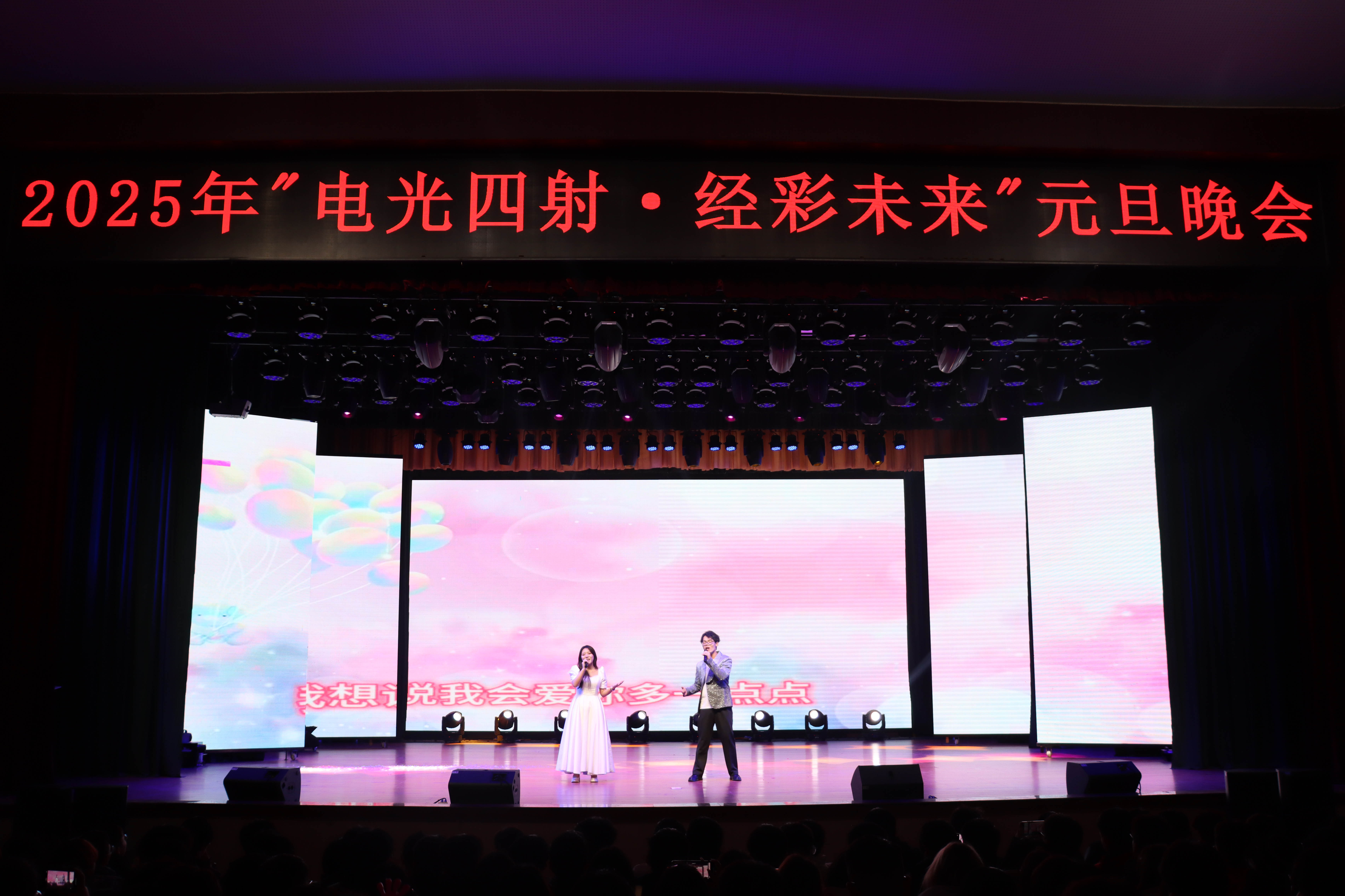 岁末年初,华章又启。在这辞旧迎新的美好时刻,2024 年 12 月 25 日晚 7 点,经济管理系携手电气工程系在学校红星礼堂成功举办了 2025 年“电光四射 经彩未来”元旦晚会,两系全体师生齐聚一堂,共庆佳节,迎接新年的脚步。