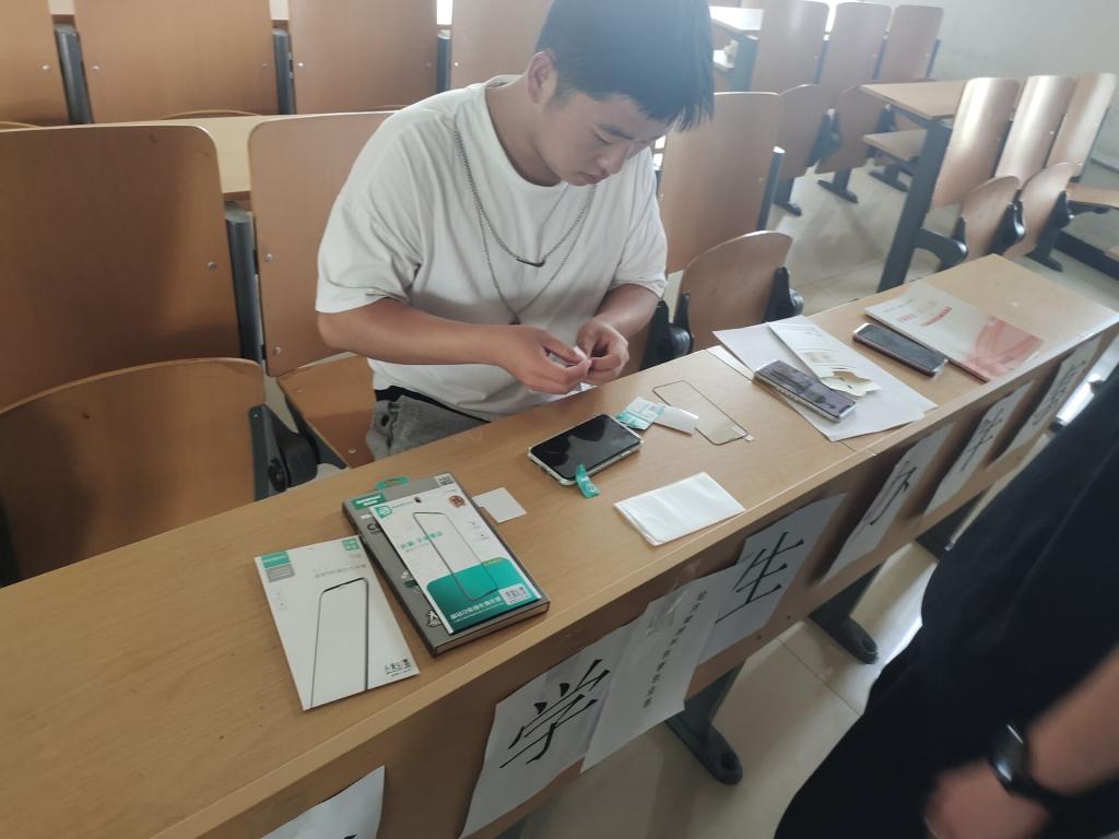 本次活动中,创新创业部全体同学积极热情的帮助了需要手机贴膜的同学,并提醒同学们使用完手机要洗手,同学们纷纷表示此次活动给他们提供了很大的帮助。