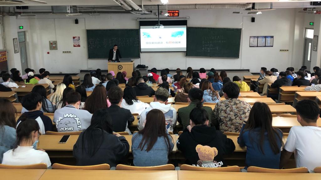 为了更好地拓宽毕业生就业渠道,4月14日下午15:30,经管系在1-1举办京东专场宣讲会。大约有100位19级营销专业的学生参加了本次招聘会。