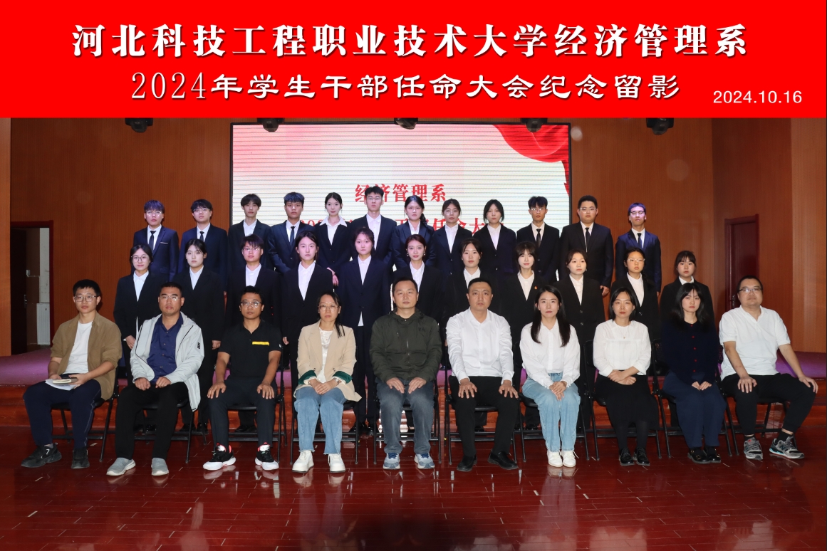 2024年10月16日,经济管理系第二十六届团总支学生会换届大会在大学生活动中心隆重召开。本次大会由系团总支书记陈昕老师主持,系党总支李宁书记、柴民杰副书记、全体辅导员以及全体学生干部参加。