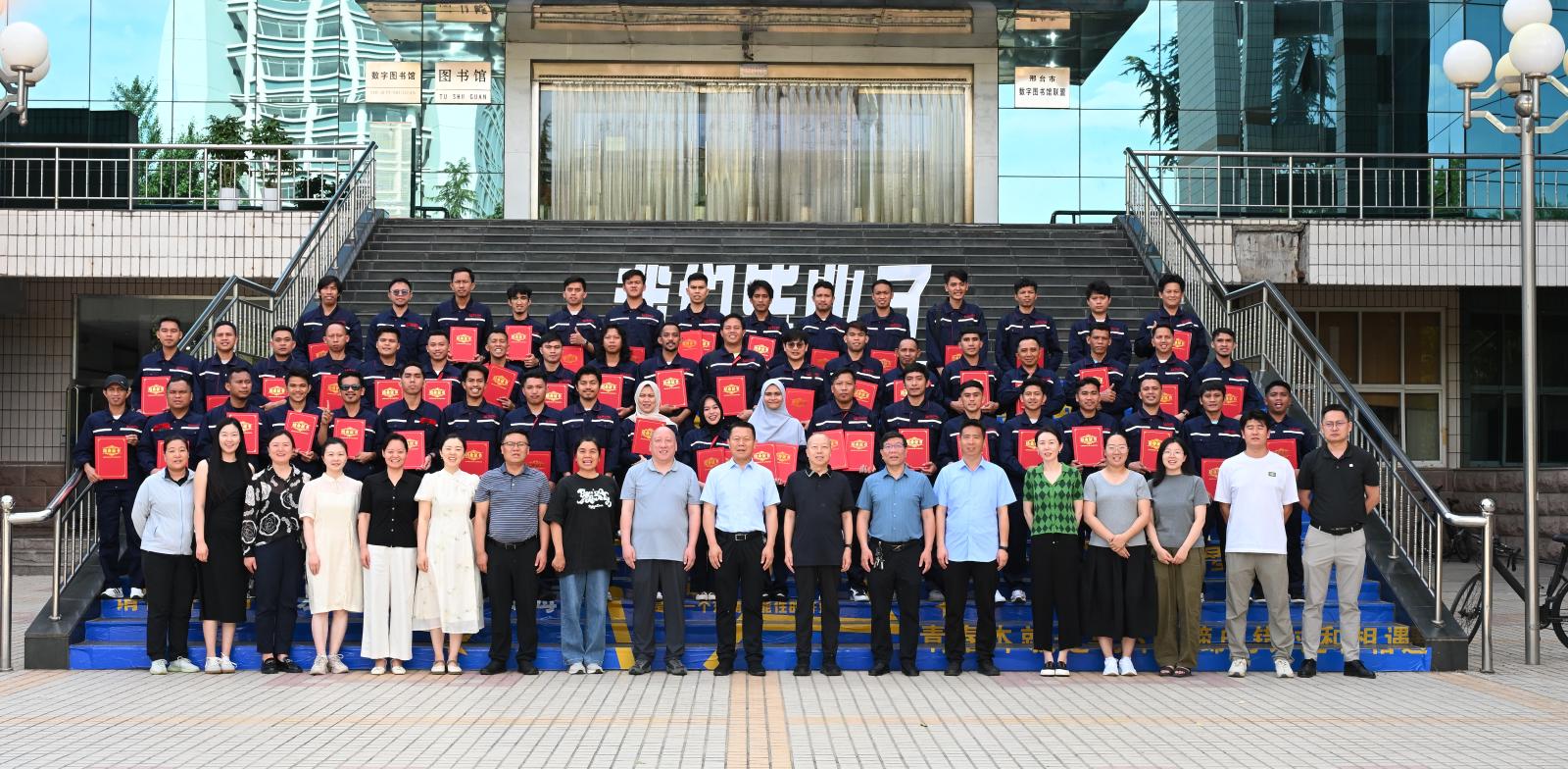 6月16日下午,德信钢铁有限公司印度尼西亚员工第四期培训班结业典礼在best365图书馆报告厅举行。校党委书记马东霄、印尼德信钢铁有限公司副总经理兼印尼德信培训学院院长王三波等校企双方领导,以及相关培训教师、班主任与53名印尼学员共同出席典礼。