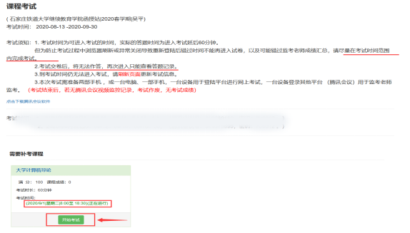 5. 查看考试须知,按课程考试
