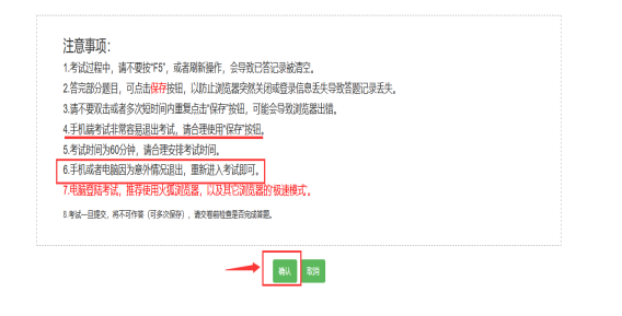 6.查看注意事项,点击开始考试