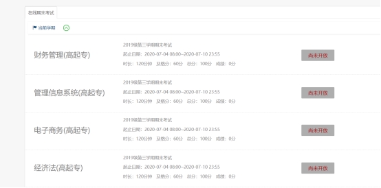 考试时间与区间安排:全部课程要求在9月10日8:00-9月20日23:55 10天时间内考试完成,考试区间内未考者视为缺考。