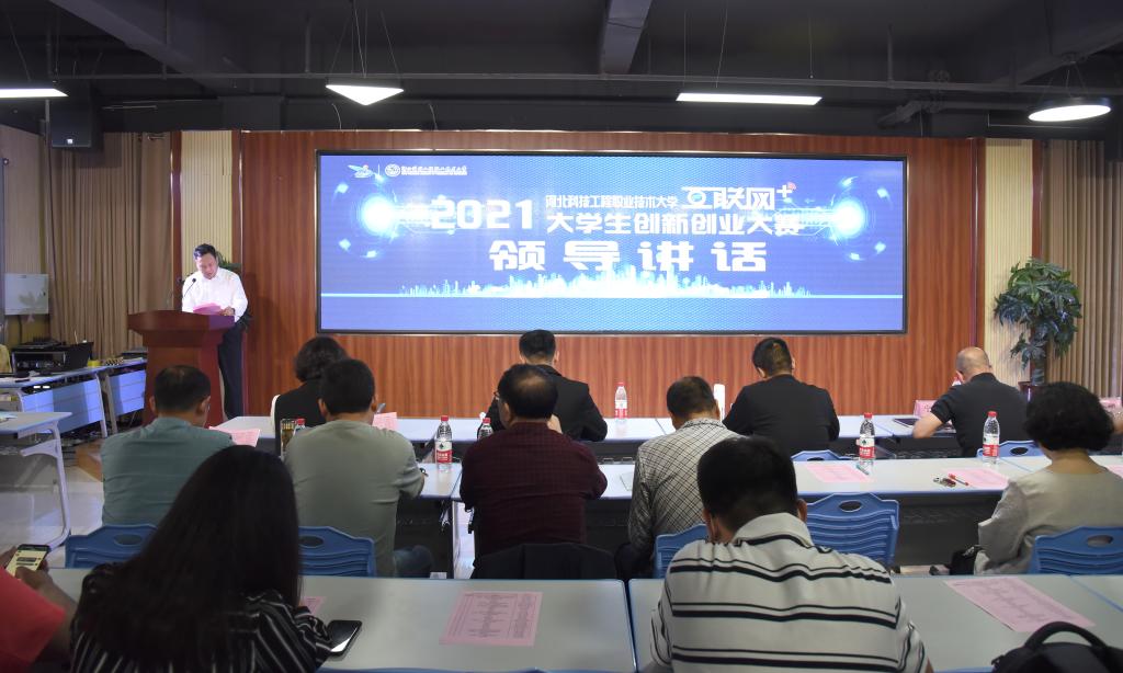 5月14日,2021年学校“互联网+”大学生创新创业大赛在科技楼路演大厅成功举办。大赛以“我敢闯,我会创”为主题,邀请了多位国赛专家评审及知名投资人担任评委,各系部领导亲临现场指导,学校百余名师生参加了本次决赛。