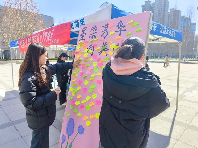 活动前夕,我系组织学生代表前往教师办公室为女性教育工作者送花,同学们以送花的方式对老师的辛苦付出表达了诚挚的感谢,同时这也是对会计系教育事业能够花团锦簇、蒸蒸日上的美好祝福。活动中,同学们写下祝福语贴,用一句句朴实简短的话语表达了对女性浓浓的赞美与关爱,发出了尊重女性的强力号召。接着,志愿者为参与活动的同学分发糖果,向他们表达了真诚的回应并希望她们能像展板上所写的那样,永远把爱自己作为人生的第一信条。最后,陈书记与在场的工作人员进行合照,为此次“女神节”主题活动画上了完美的句号。
