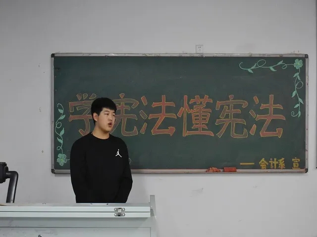 安全铭记于心,文明伴随我行。为深入学习贯彻习近平总书记关于加强宪法法治宣传教育的重要指示精神,增强学生法律意识,不断弘扬宪法精神。12月2日晚七点,我系于B516教室开展“学宪法,懂宪法”道德讲堂。此次道德讲堂由刘赛同学主持,21级学生代表到场参加。