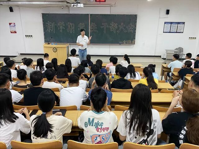 会议伊始,石磊书记就新学期的学生工作安排发表讲话。石书记指出,新的学期,要找准自身的定位,做好个人的学习规划,把时间合理充分的利用起来,真正的做到会学习、懂思考、严律己,不断的提高自身修养。同时,作为一名学生干部,要学会处理工作与学习的关系,主动担当作为,协调各个部门的工作,配合老师完成学院下发的各项任务。最后,石磊书记对同学们寄托了新的期许,希望各位学生干部共勉互助、砥砺前行,不断强化责任担当意识,在学习和工作中更好的完善自己。