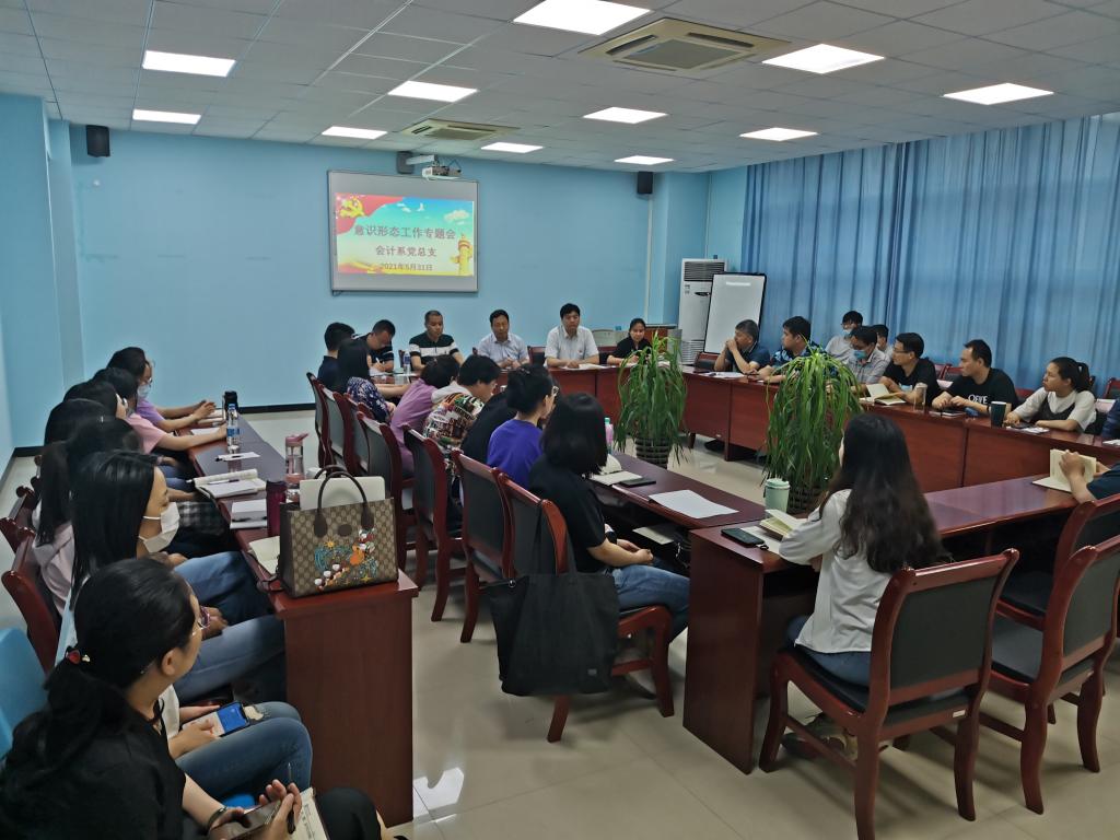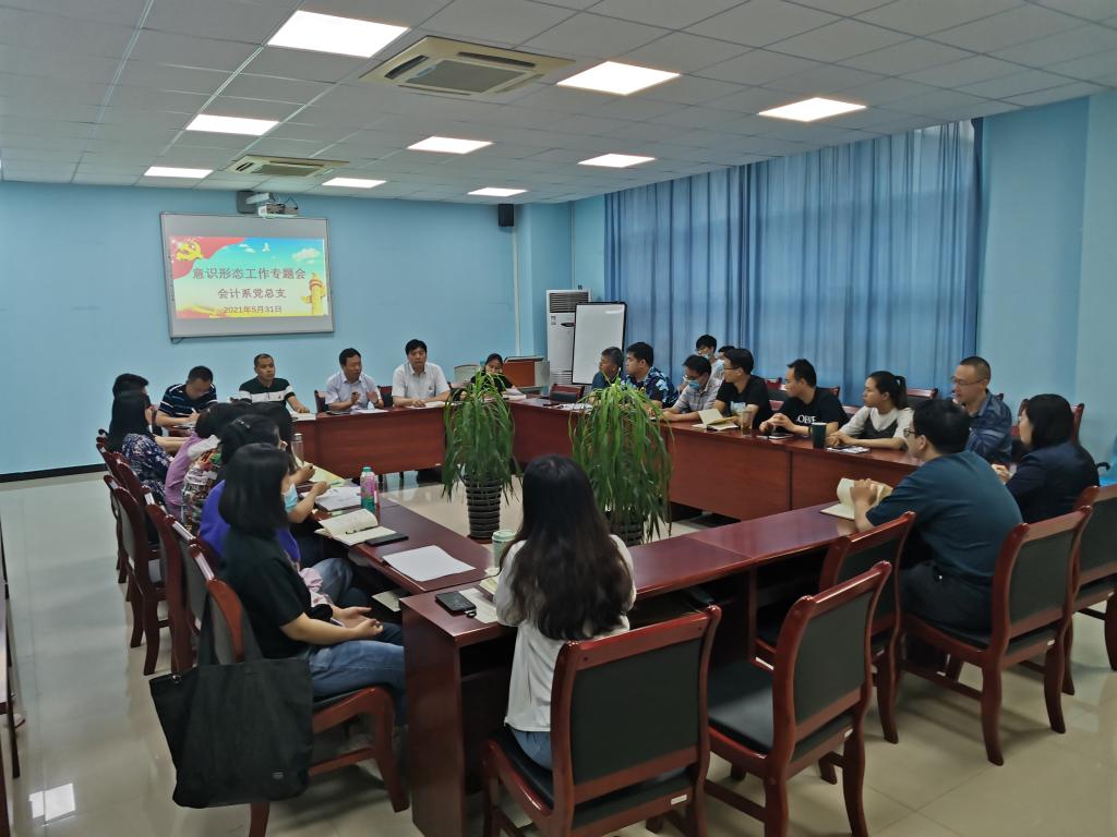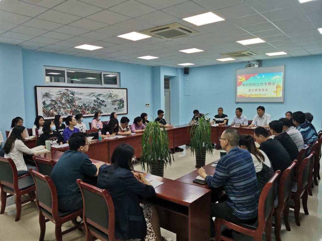 为切实做好意识形态工作,加强和改进党对意识形态工作的领导,维护学校政治安全和校园和谐稳定,以优异的成绩庆祝建党100周年,按照省委的要求,结合学院部署安排,5月31日,会计系召开意识形态工作专题会。校领导褚建立到场参会并作主题发言,系党总支石磊书记主持会议。