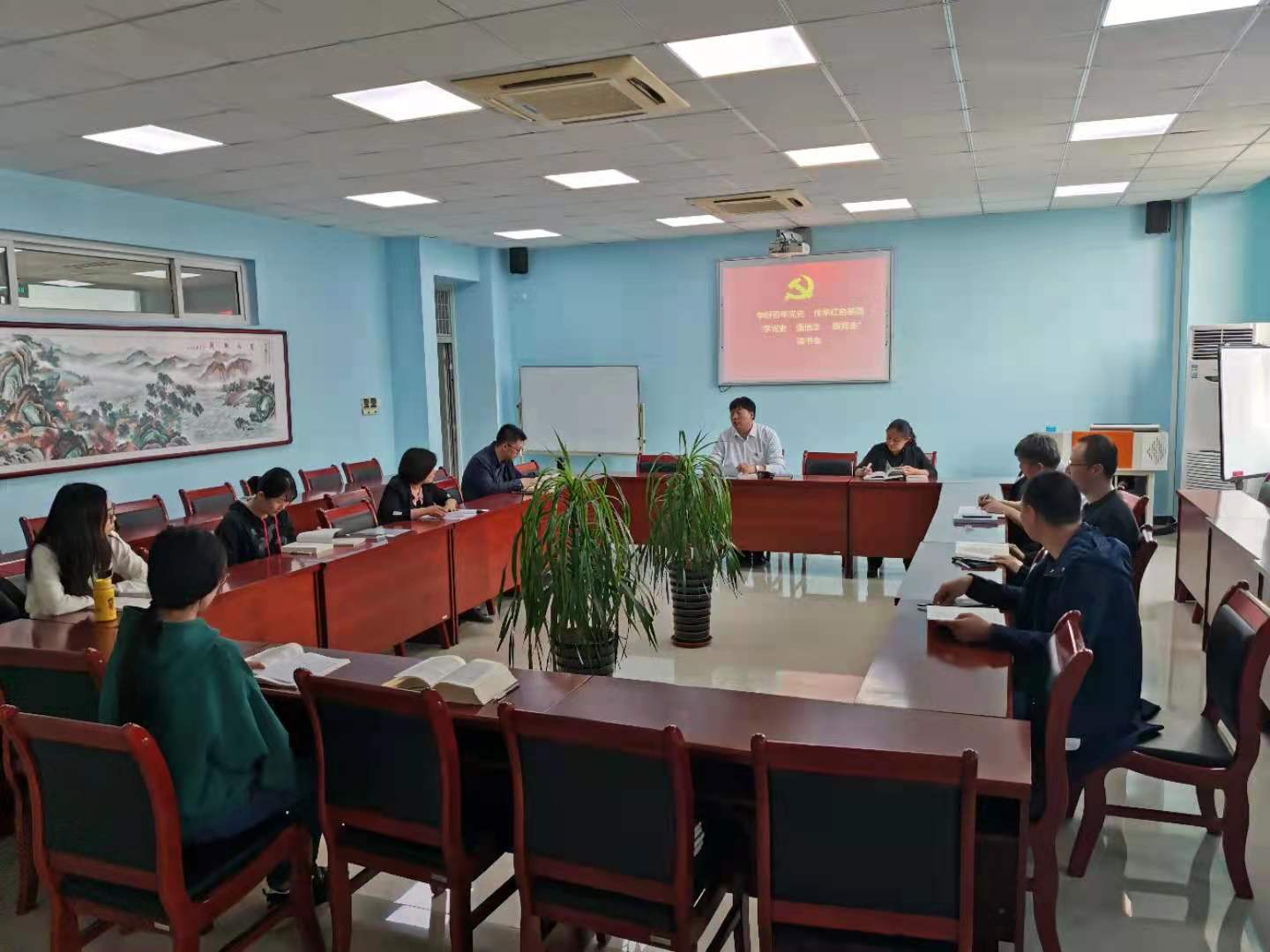 4月19日下午,我系组织进行第二十九期“周一夜学”学习活动,并同步举行“学党史、强信念、跟党走”读书会。系党政班子成员、教工党员代表参加学习,由系副主任申春峰主持。