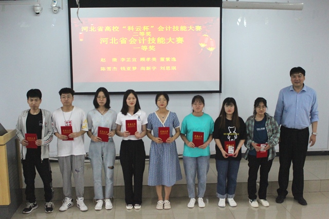 下午3点半,颁奖典礼准时开始。王路辉、王亚广、李桢3位老师分别对“会计系第二届财务决策大赛”、“会计系第四届会计知识大赛”、“河北省2020年度会计技能大赛”、“河北省2020年度审计技能大赛”、“河北省2020年度金融科技技能大赛”、“河北省2020年度财务决策大赛”、“河北省2020年度互联网+创新创业大赛”以及“全国财务决策大赛”、“全国财务大数据大赛”进行了介绍,并宣读了获奖名单。系领导和老师们为获奖选手颁发了奖品和荣誉证书,并合影留念。