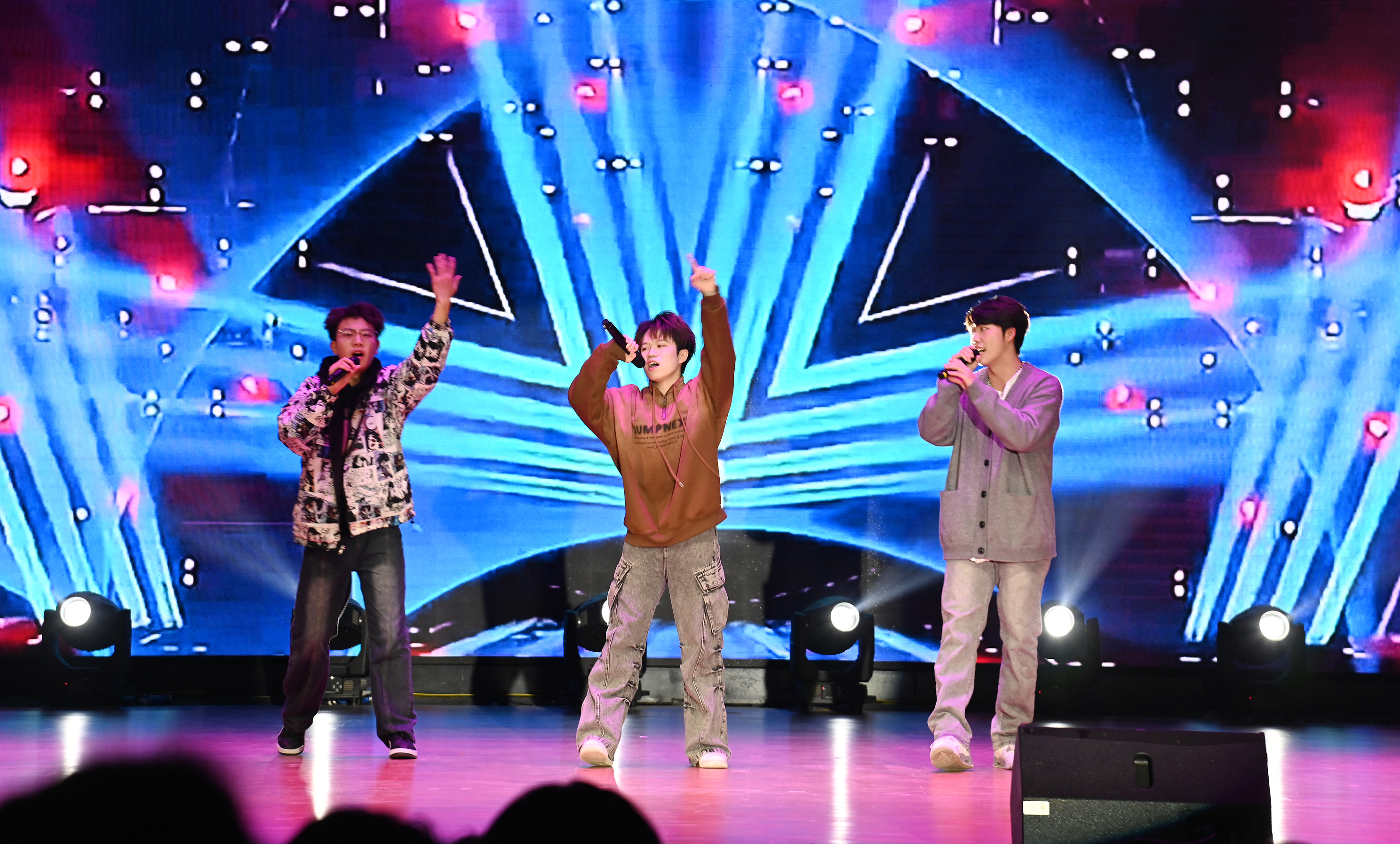元气满满的歌曲串烧传递出元旦的欢乐氛围,在《甜蜜蜜》的浪漫中陶醉,在《爱很美》的热烈中欢欣,在《野狼disco》的劲爆中快意潇洒,台上的歌手与观众的热情互相呼应,昂扬的歌声与热烈的回应展现出会计学子的青春活力。