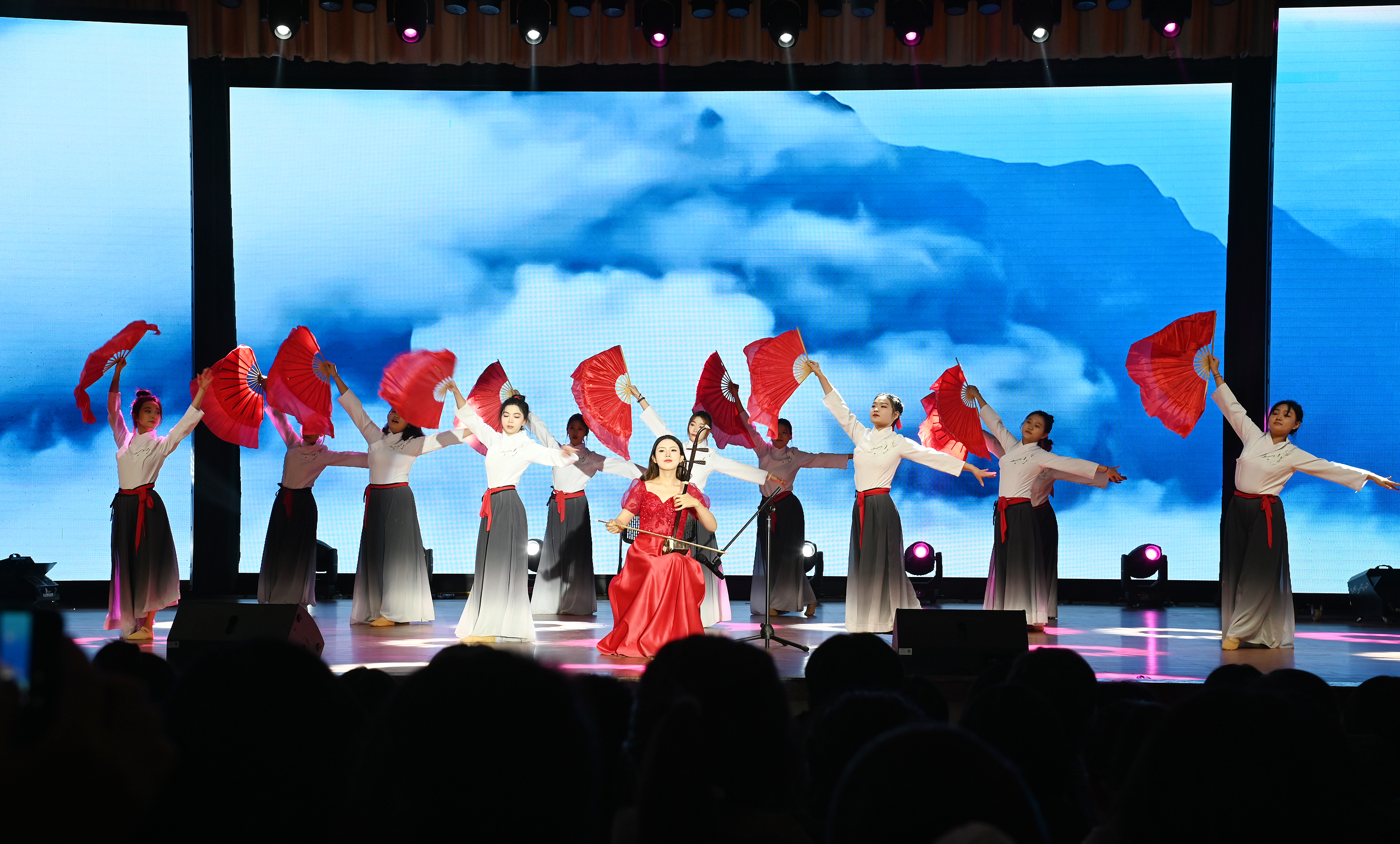 “一条大河波浪宽,风吹稻花香两岸”,表演者随着音乐节奏而舞动,扣人心弦。舞蹈演员舞姿曼妙,宛如一幅流动的画卷,向观众传达着浓浓的人间烟火气。