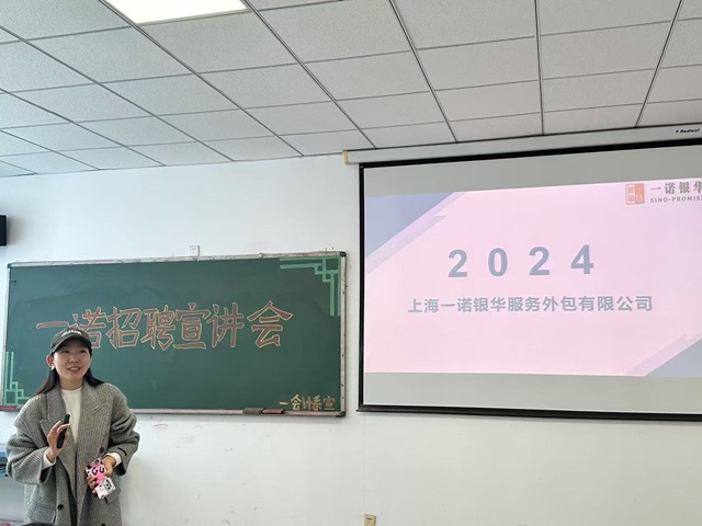 为加强我系学生对就业形势的了解,尽快找到正确的就业方向,拓宽其就业渠道。10月22日下午,我系于B516教室召开上海一诺银华服务有限公司招聘宣讲会。本次会议由一诺公司代表主讲,22级毕业生代表到场参加。