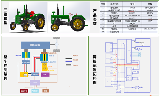增程式电动拖拉机作为农业机械电动化转型的代表性产品,凭借其卓越的性能优势展现出广阔的市场前景。该产品创新性地融合了纯电动与混合动力技术。采用智能能量管理系统,传动效率高达 80%-86%,较传统柴油拖拉机节能30%以上;本中心联合区域龙头农机制造企业开展协同创新,重点研发增程式拖拉机三大核心技术:高效动力驱动总成,智能能量管理策略,多模式协同控制系统。研发成果处于台架试验阶段,已联合申报5件专利,相关产品在2024年秋季广交会正式亮相,获得国内外客户的广泛关注。该产品的推广应用将有力推动我国农业机械的绿色化、智能化转型升级,预计未来三年可实现产业化规模应用。