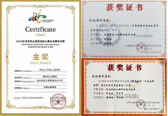 团队主要成员在维修、教学、技术实操领域均有深厚积累和专业实力。有2人获得高级维修技师、1人为机动车检测工技师,2人为河北省技术能手,1人为全国技术能手。
