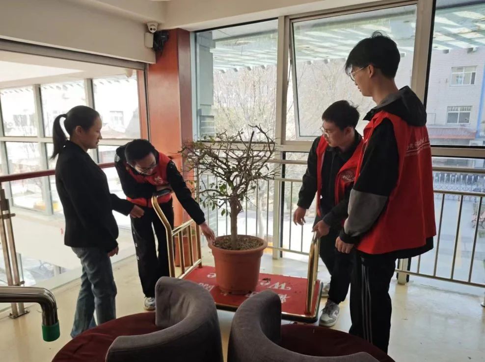 活动开始,志愿者在了解活动内容后组成搬花小组,他们在养老院工作人员引导下分别前往不同楼层。他们在搬小花盆时小心翼翼,没有破坏一花一叶;在搬体积较大的花盆时,他们积极发挥团队合作精神共同完成搬花任务。当花摆到指定位置后,志愿者细心善后,将地面的落叶打扫干净并将用具返回的指定位置。养老院的爷爷奶奶们向志愿者投来了赞许的目光,在养老院工作人员表达感谢后,本次活动以合影留念而圆满结束。