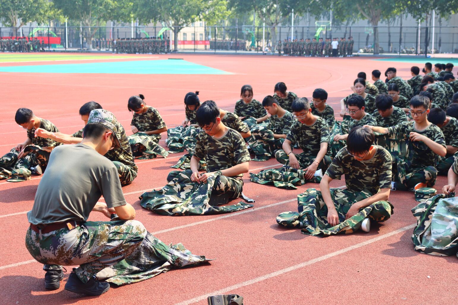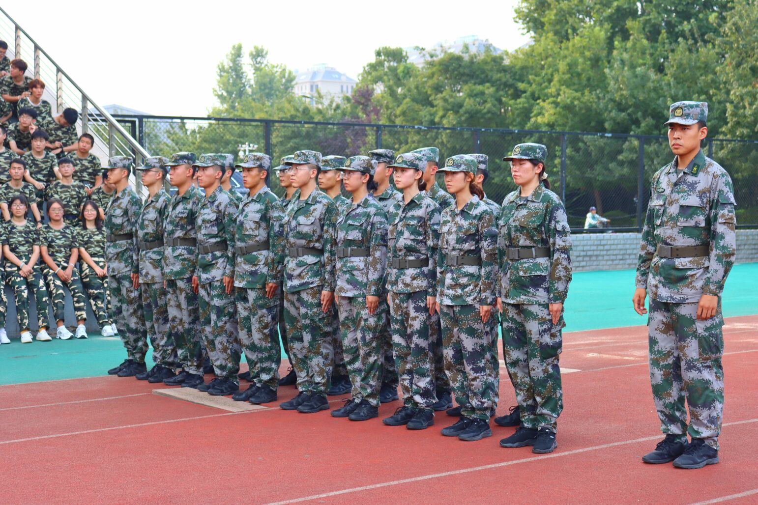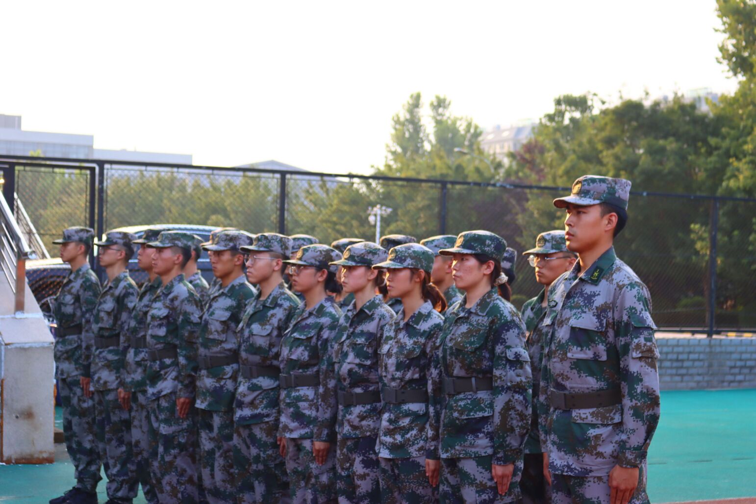 秋风吹动红旗,迎着旭日的阳光,田径场上的斑斑迷彩也镀上一层金光。随集结口号响起新一天的军训生活正式开始。