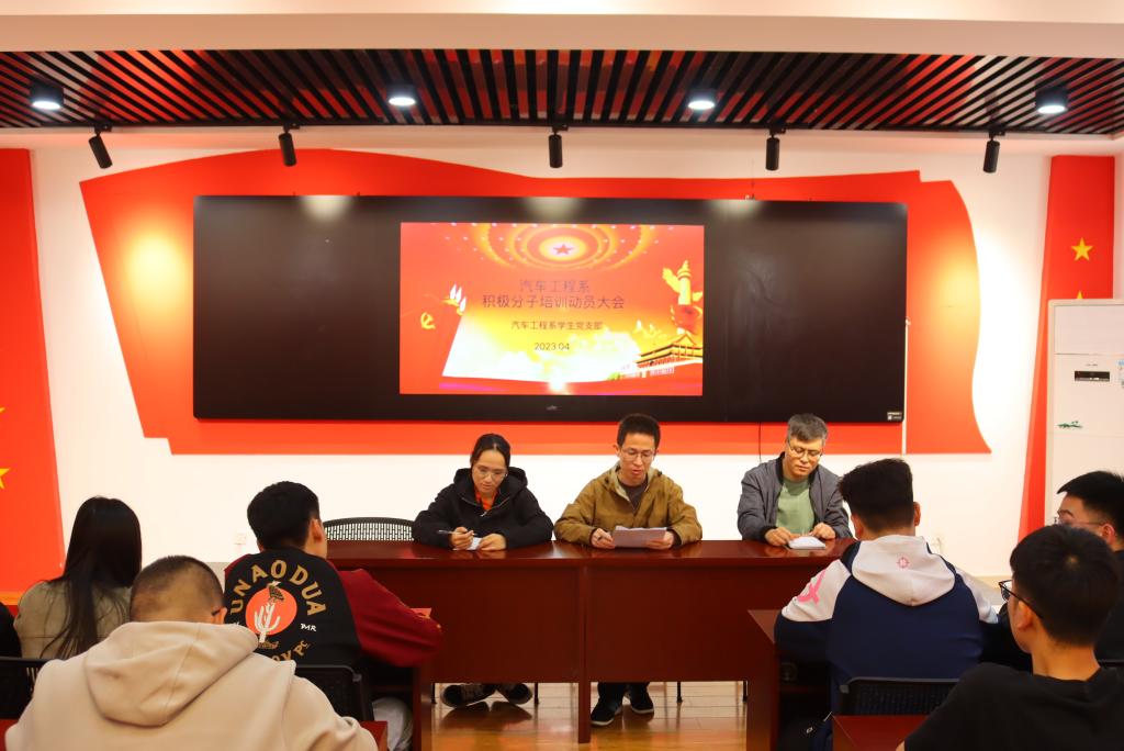 为深入贯彻党的二十大精神,加强党性教育端正入党动机,确保党员发展质量,提升入党积极分子的政治素质,发挥模范带头作用。我系于4月9日下午在汽车楼302举行入党积极分子培训动员大会和学生党支部4月份主题党日活动。学生党支部书记戴洪龙老师、20级辅导员秦思学老师、21级辅导员林伟老师参加。