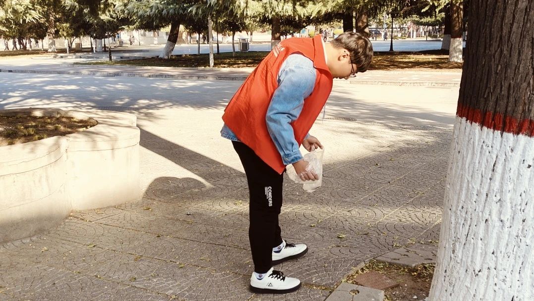 活动开始时,志愿者们首先对清扫工作进行具体地分工,对生活区,主教学楼,第二教楼及汽车楼四片区域的草丛、树坑、垃圾桶周围等角落的垃圾进行处理,明确任务后志愿者们紧接着进入工作状态,有的清扫陈积落叶,有的捡拾垃圾,有的把垃圾装袋,有的拾捡地上的烟头并将其装入塑料瓶中。他们的每一次弯腰,每一次俯身,都在为校园环境的保护增添一份力量,在志愿者的辛勤工作下,大量垃圾被清除,大大美化了校园的环境,他们们用自己的实践行动诠释着新时代青年的使命担当。