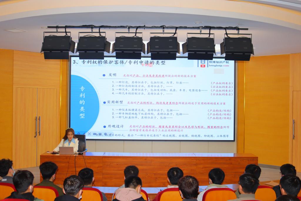 讲座中,马老师首先对专利申请相关知识进行了简单介绍,然后以她们团队在服务长城专利和华为专利过程中的典型案例进行了精彩分享,案例分享令师生们在发现问题、解决问题以及创新过程方面的认知深受感触,接着以技术研发、现有技术、专利引证为基础的汽车类专利挖掘进行了介绍。讲座最后的交流环节不仅强化了师生们对知识产权重要性的理解,而且让师生们在热烈的氛围中体会到学到知识的满足。