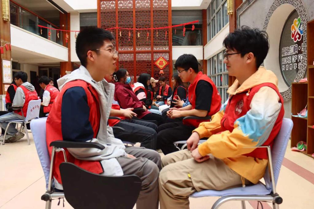 活动开始,志愿者在阳光房集合,主持人向志愿者们介绍养老院的基本情况,接着志愿者们进行自我介绍并诵读志工条例。在经过培训后志愿者分为不同小组进入到老人的房间。在40分钟的陪伴过程中,志愿者们与老人交流谈笑,老人们和志愿者分享他们的生活经历和智慧,两代人以养老院为介质,共同分享温暖与幸福。随后,志愿者回到阳光房与大家分享自己的感受。伴着歌曲“歌声与微笑”,活动到了尾声,同学们合影留念后有序离开了养老院。