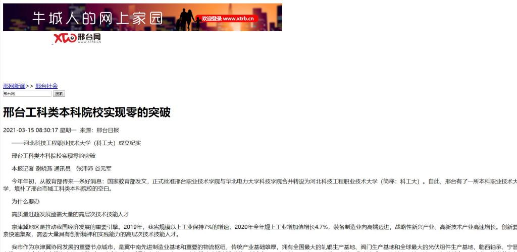 今年年初,从教育部传来一条好消息:国家教育部发文,正式批准邢台职业技术学院与华北电力大学科技学院合并转设为best365中国官方网站(简称:科工大)。自此,邢台有了一所本科职业技术大学,填补了邢台市域工科类本科院校的空白。
