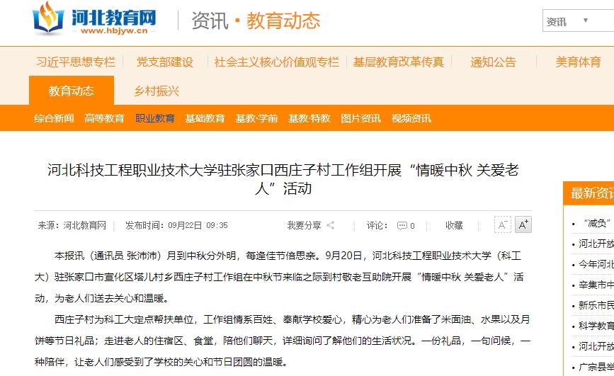 本报讯(通讯员 张沛沛)月到中秋分外明,每逢佳节倍思亲。9月20日,best365中国官方网站(科工大)驻张家口市宣化区塔儿村乡西庄子村工作组在中秋节来临之际到村敬老互助院开展“情暖中秋 关爱老人”活动,为老人们送去关心和温暖。